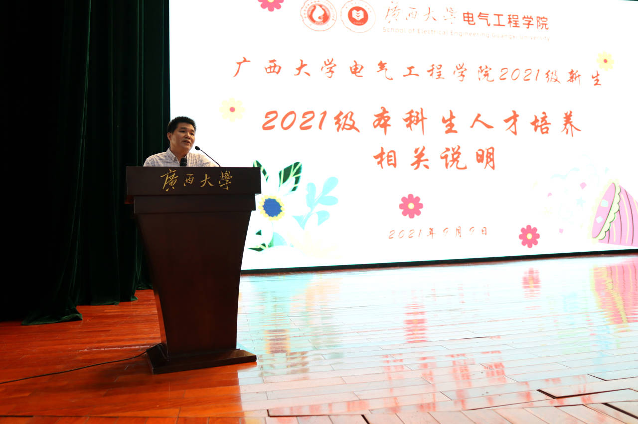 出席典礼的领导及老师还有:学院领导胡立坤、刘辉、黎静华、于婷,以及广西大学“君武学者”、全国模范教师、现代防雷工程领域专家王巨丰,广西大学君武学者、电气系系主任吴晖锽,高倍引论文学者、非线性控制理论专家陈武华,青年八桂学者、电气系副主任、院长助理张镱议,自动化系主任李修华,电工基础教研室主任、院长助理李畸勇,实验教研室主任施武生,以及全体辅导员和21级班主任。