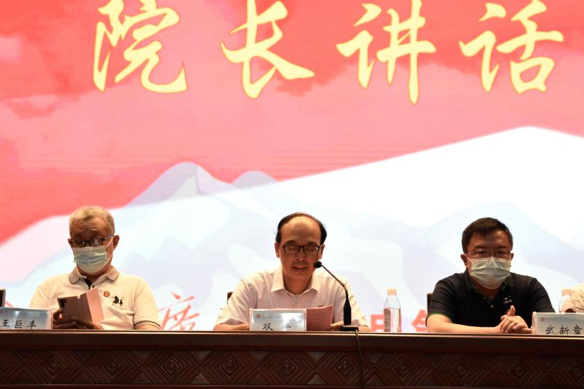 迎新典礼在庄严的国歌声中拉开帷幕。双丰院长代表学院全体师生对新生表示欢迎和祝贺,并从“济世”“修身”和“报国”三个方面对新生提出希冀。愿新生秉承“勤恳朴诚,厚学致新”的校训精神,努力成长为具有社会责任、法制意识、创新精神、实践能力和国际视野的“五有领军型人才”。
