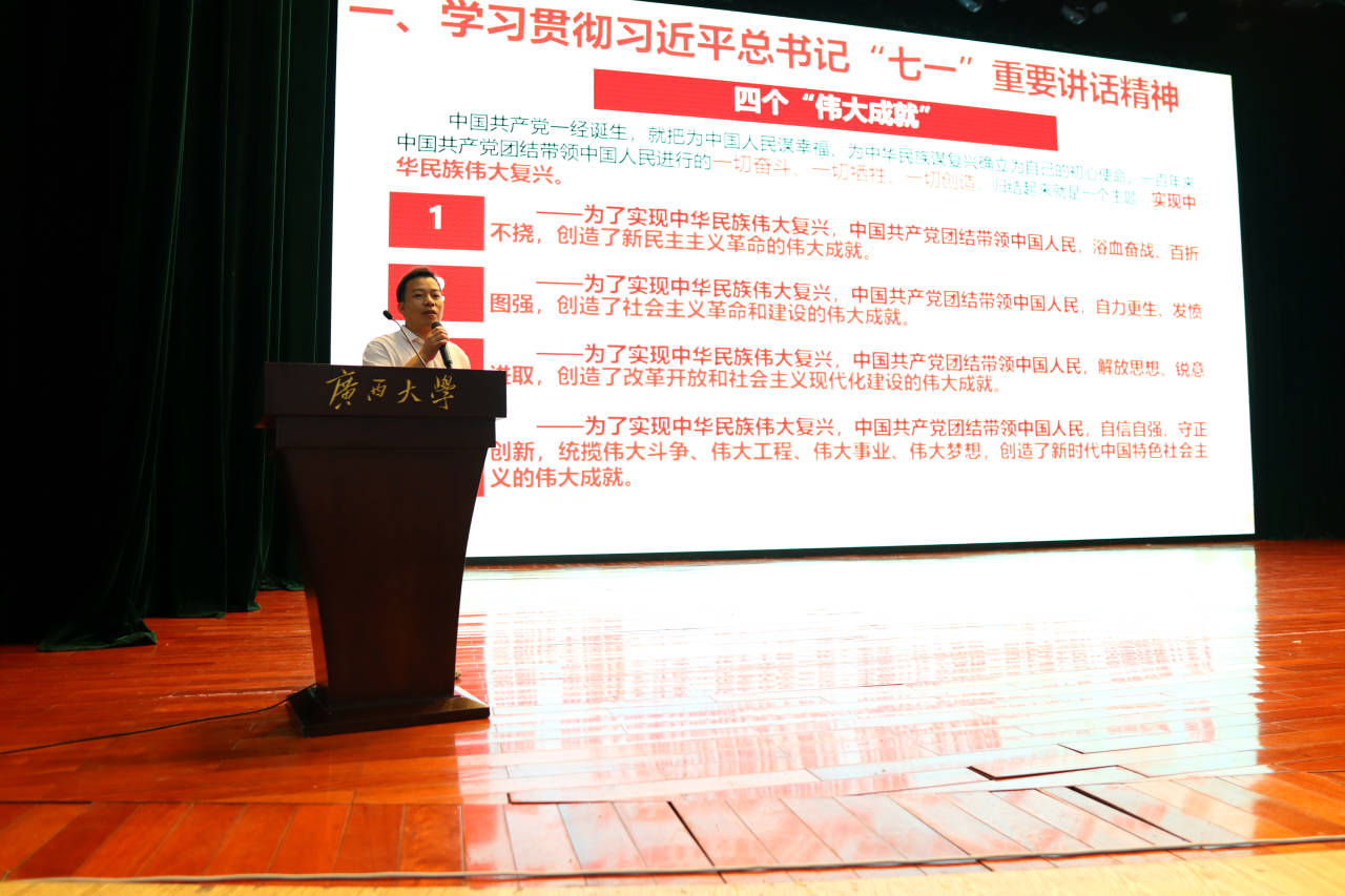 团委书记石建有老师对全体2021级新生开展入党启发教育活动。石老师指出,想加入中国共产党的同学要做的第一件事就是端正入党动机。入党动机必须是信仰的、成长的,不应是功利的、盲从的。入党应当心怀信仰,胸有山河,党员是为人民服务的,而绝不是精致的利己主义者。在两个一百年的伟大历史交汇点,党组织需要信念坚定,对党忠诚的新血液,为中华民族复兴之路注入源源不断的动能。