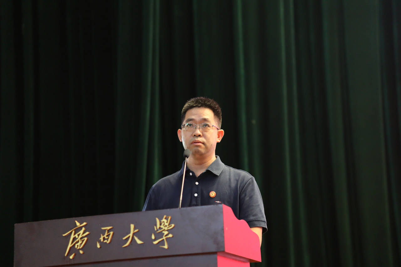 研究生团委副书记谭思源和学生会主席蒙军分别作为高年级代表做了发言,他们代表全体高年级学生对新生的到来表示欢迎,并表示生逢盛世,使命在肩,当不负盛世。新生代表康子瑞表示,身为西大人,应当以马君武校长为榜样,以勤恳朴诚,厚学致新的校训立言力行,勇往直前。