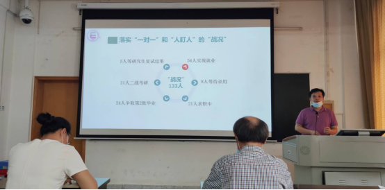 一是提高政治站位,高度重视就业工作。充分认识中央政治局提出“六保”,将“保就业”摆在首位的政治意义,学院将召开党政联席会议专门研讨就业创业工作。二是抓实抓细、协同推进就业工作。班主任、导师、辅导员要准确掌握并及时反馈就业进展情况。三是要共享信息,加强沟通。大家既要种好责任田,也要服务学院就业大局。四是关注重点人群就业。继续加强对建档立卡、疫情防控重点地区的未就业学生关怀和帮扶。做到“一生一策”,提高帮扶实效,促进就业。五是关注就业,同时也关注学业。高校培养人才是一个系统工程,要一切为了学生,以学生为中心,关注就业困难毕业生的同时,也要关注学业困难的毕业生,要全过程关心学生的成才成长、就业创业。充分把握就业冲刺行动”的关键时期,将就业创业工作推进到底!