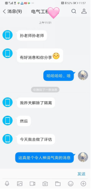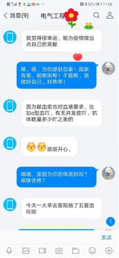图1:张哲把捐献血浆的好消息分享给学院辅导员老师