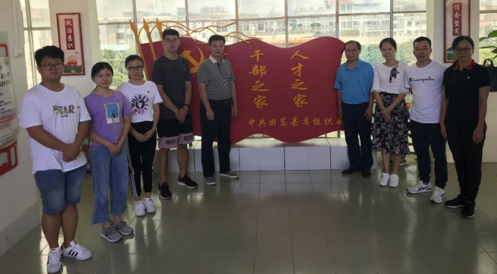 2019年7月31日—8月1日,电气工程学院党委开展走访慰问学院定向选调生校友活动。学院师生代表一行8人在学院党委书记梁京章、副书记梁志坚的带领下前往百色市田东县平马镇、田阳县那坡镇、德保县隆桑镇三地慰问了在乡镇一线工作的定向选调生李倩、胡彬和杨志国同志。