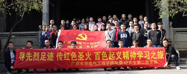 我院研究生第二党支部(简称研二支部)于 2018 11 25 日组织支部党员及积极份子前往百色革命老区,举行以寻先烈足迹 传红色圣火 百色起义精神学习之旅为主题的参观学习活动。