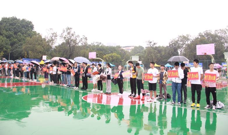 开幕式上,学院党委副书记梁志坚老师致开幕词,他强调同学们应在紧张学习的同时,不忘劳逸结合,鼓励同学们走下网络、走出宿舍、走向操场,多多参与这些趣味与锻炼并存的活动,既提高学习效率又达到锻炼身体的效果。梁副书记还打趣在绵绵细雨中开幕的运动会是近年来最浪漫的一届运动会。