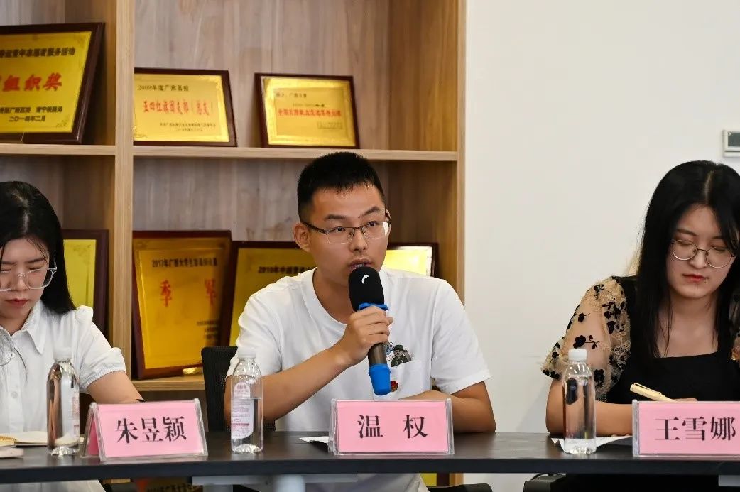 此次沙龙由共青团广西大学委员会主办,共青团开云kaiyun登录入口委员会承办,开云kaiyun登录入口研究生会策划开展。校团委书记谢能重、院党委副书记雷圆媛出席活动并讲话。院团委书记石建有、团委副书记蒋冬连、辅导员魏书颂、辅导员韦俞妃、辅导员李楠和各学生代表参与本次活动。