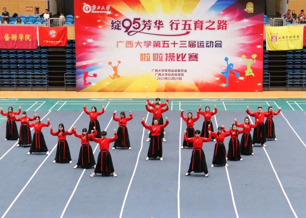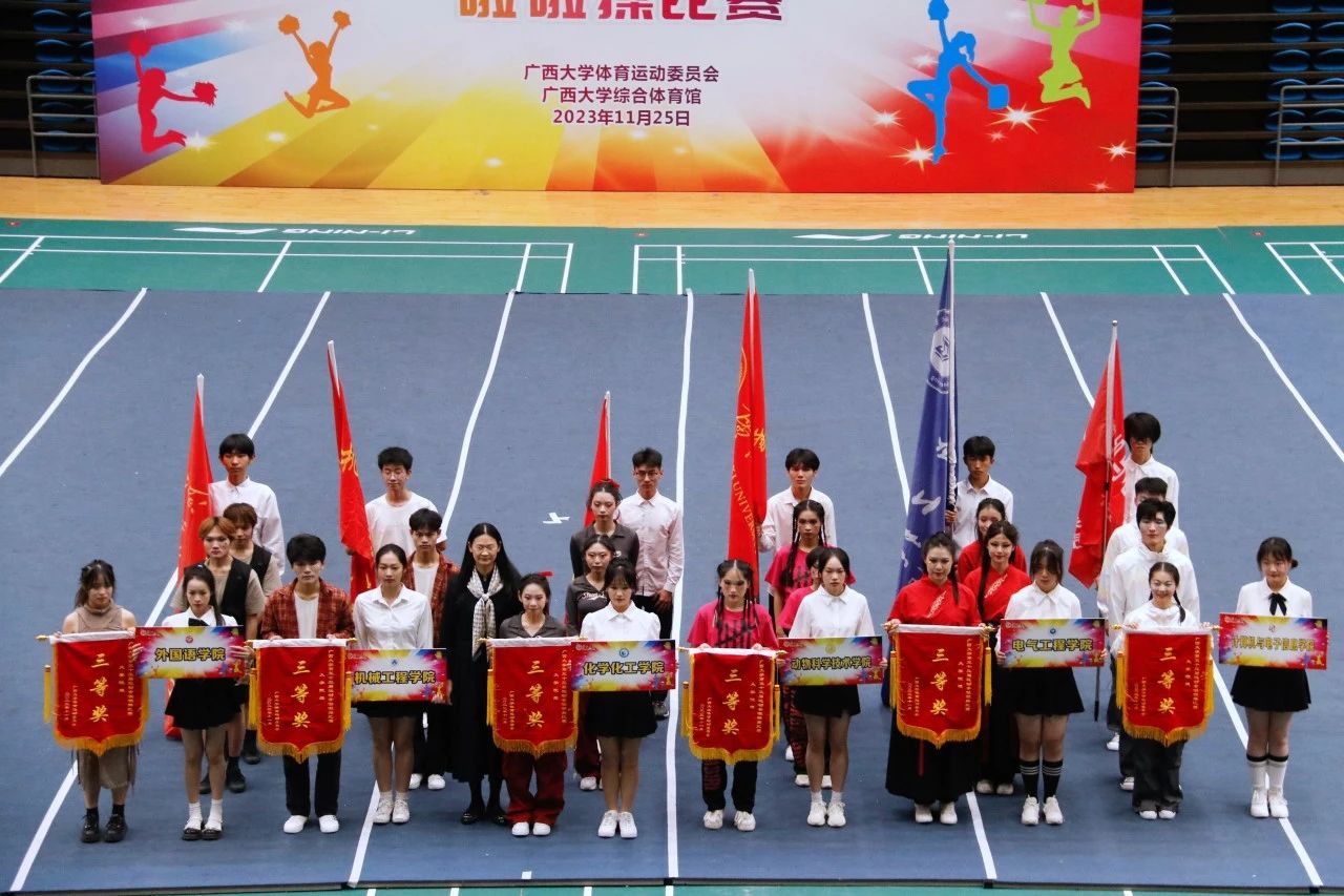 11月25日下午,广西大学第五十三届运动会啦啦操比赛在西校园体育馆举行。经过激烈的角逐,我院啦啦操队荣获大学院组三等奖和最佳活力奖,王梦瑜同学获得最佳运动员奖。