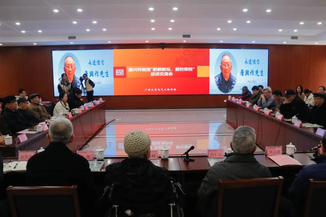 12月23日,我院在君武馆第二会议厅举行唐兴祚教授“耕耘教坛、爱校荣校”座谈交流活动。与会师生深切缅怀唐兴祚教授身上所体现的科学精神、园丁风范、职业操守。广西大学教育发展基金会理事长何志清同志,广西大学离退处副处长农贵生同志,电气工程学院原党委书记肖仁山老师,学院原系副主任、原民革广西主委吴景峰老师、原广西大学副校长韦化老师等退休教师代表,唐兴祚教授的授业研究生代表、以及学院师生代表等共50余人出席座谈会。学院党委书记梁志坚主持座谈交流会。
