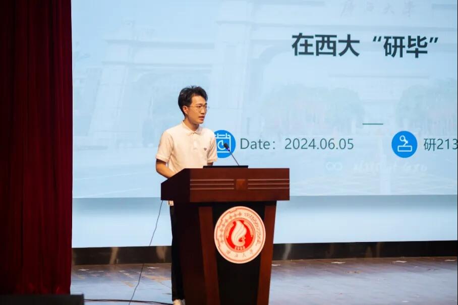 谢旭槟,本硕就读于开云kaiyun登录入口,曾任电气工程学院团委副书记(学生)、研究生会主席团成员,获得广西大学2024届优秀毕业生。即将毕业的他为学弟学妹们分享了本科同学在外校的读研生涯以及就业情况,同时结合自身情况分享了他在西大的读研生活,还介绍了所在实验室的环境与氛围,简单展示了实验室成员的就业情况。他热情地呼吁学弟学妹们能够留校继续深造,与母校共同发展、共创辉煌。
