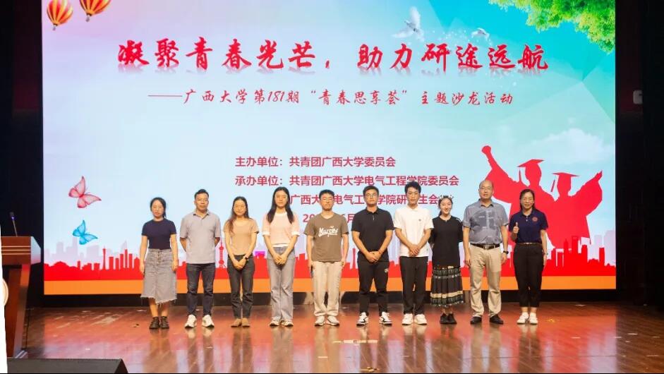 此次沙龙由共青团广西大学委员会主办,共青团开云kaiyun登录入口委员会承办,我院研究生会策划开展。学院党委副书记李道洋,团委书记石建有,团委副书记蒋冬连、李娟,校研究生会主席团成员周奕彤出席活动,我院2021级本科生参与活动。