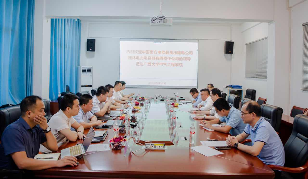 6月20日下午,由中国南方电网有限责任公司牵头,广西大学、桂林电力电容器有限责任公司联合申报的广西重点研发计划粤桂东西部协作关键技术研发及应用方向“全国产化高压滤波电容器关键技术研究及工程应用”项目启动会在我院顺利召开!学院院长武新章,中国南方电网有限责任公司超高压输电公司电力科研院副总经理邵震,桂林电力电容器有限责任公司副总经理李刚参加项目启动会,会议由项目负责人、我院张镱议教授主持。