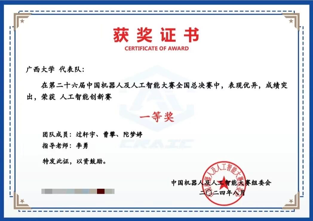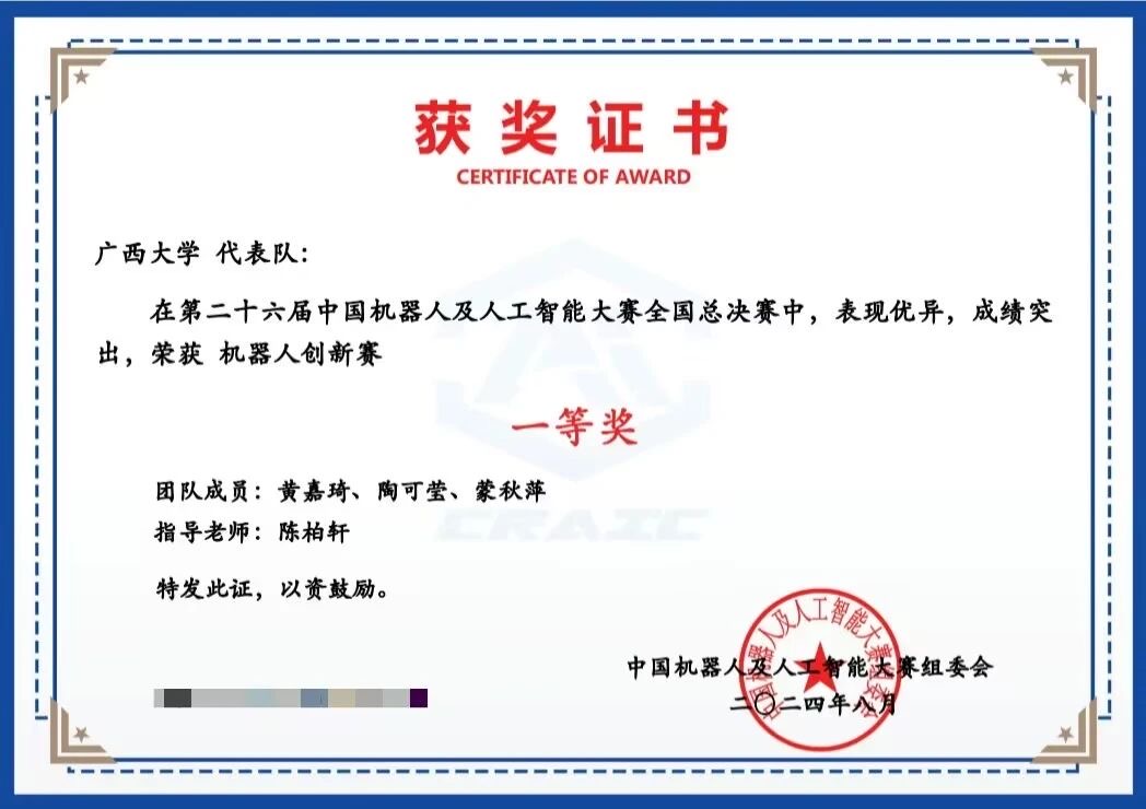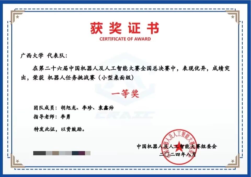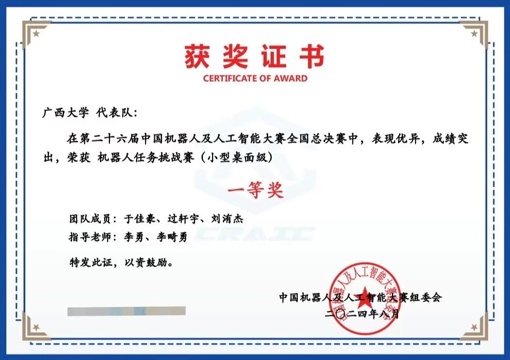 喜报 | 我院学子在第二十六届中国机器人及人工智能大赛中获佳绩