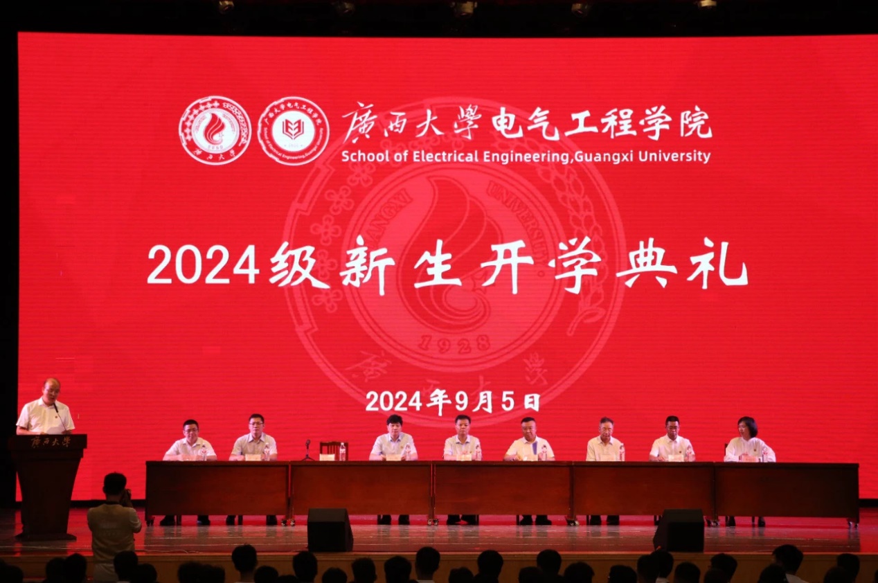 9月5日,我院在大礼堂举行2024级新生开学典礼。学院党委书记梁志坚,国家海外高层次人才、院长武新章,国家重大人才工程入选者、学院党委副书记、副院长刘辉,爱思唯尔中国高被引学者榜单入选者陈武华,党委副书记、纪委书记李道洋,副院长李畸勇、郑天和,自动化系主任李修华,实验教研室主任徐俊华,新生班主任、学工组全体辅导员、2024级835名新生参加开学典礼。典礼由李道洋副书记主持。