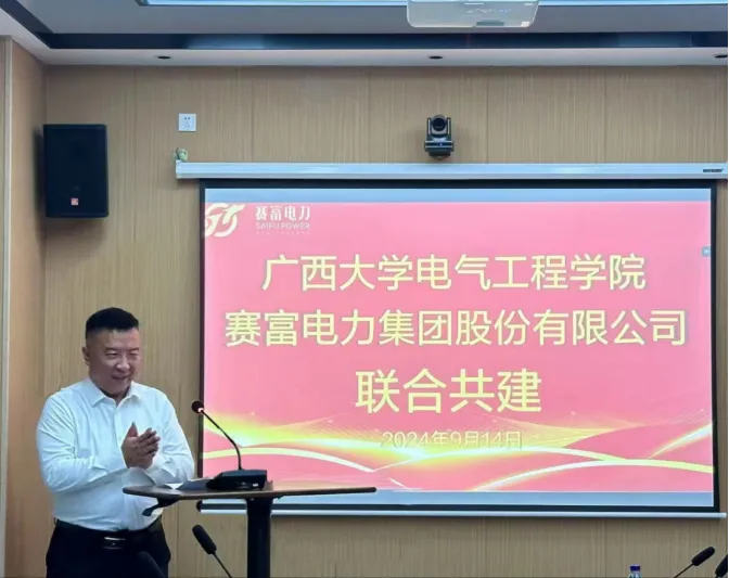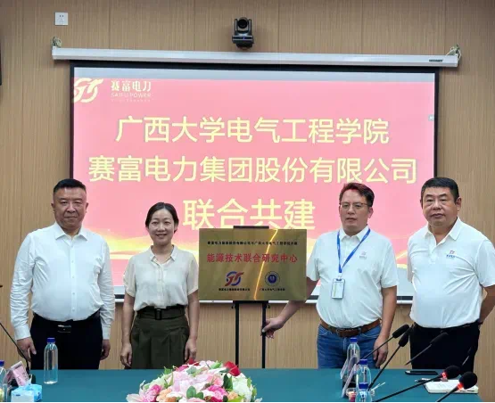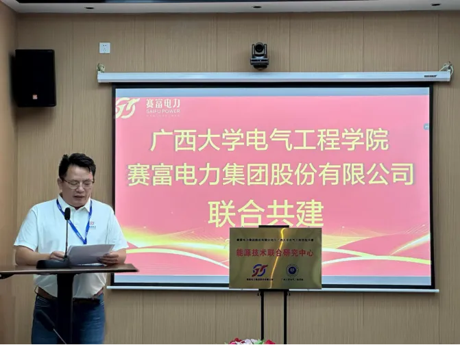揭牌仪式 9月14日,我院与赛富电力集团股份有限公司(以下简称“赛富电力”)联合共建的“能源技术联合研究中心”(以下简称“中心”)在赛富电力总部举行揭牌仪式。我院院长武新章、党委副书记李道洋、电气工程系主任陈碧云、电气工程系副主任刘捷丰,赛富电力董事长伍文生、总经理梁树乐出席仪式,中心的研究技术人员(双方代表)共计20人参加仪式。 仪式上,武新章院长与伍文生董事长分别代表我院与赛富电力致辞。随后,双方代表共同为中心揭牌,标志着这一合作项目的正式启动。 武新章院长致辞 武新章院长在致辞中强调,校企合作是推动科技创新和人才培养的重要途径。通过中心联合研发,推动新能源技术的前沿研究,加速科研成果转化,提升企业的核心竞争力,实现创新驱动发展;为我院学生创造机会参与实际项目,提升实践能力和创新思维,实现高素质人才培养;将充分推进校企资源共享,优势互补,激发更多创新思维,推动整个行业的发展,同时推动社会价值创造。 梁树乐总经理讲话 梁树乐总经理指出,赛富电力在电网及新能源领域深耕多年,一直视技术研发与创新为核心驱动力。此次与开云kaiyun登录入口合作建立“能源技术联合研究中心”,是双方着眼未来的战略举措,体现了对新能源事业的共同热情与执着追求。 参观赛富电力总部智能运营中心 未来,中心将聚焦新能源领域的战略规划、产业研究、技术创新、科技成果转化等方面,推动新能源技术的创新与应用,促进企业与高校的成果转换,实现资源共享、互惠互利、共同发展。双方将把中心建设成为服务广西新能源战略发展的高端能源智库,为政府制定相关政策提供咨询与科学依据,为服务广西新能源战略性项目提供有力支撑。 活动期间,双方与会技术人员进行了热烈而深入的专业交流。此外,我院一行人参观了赛富电力总部。