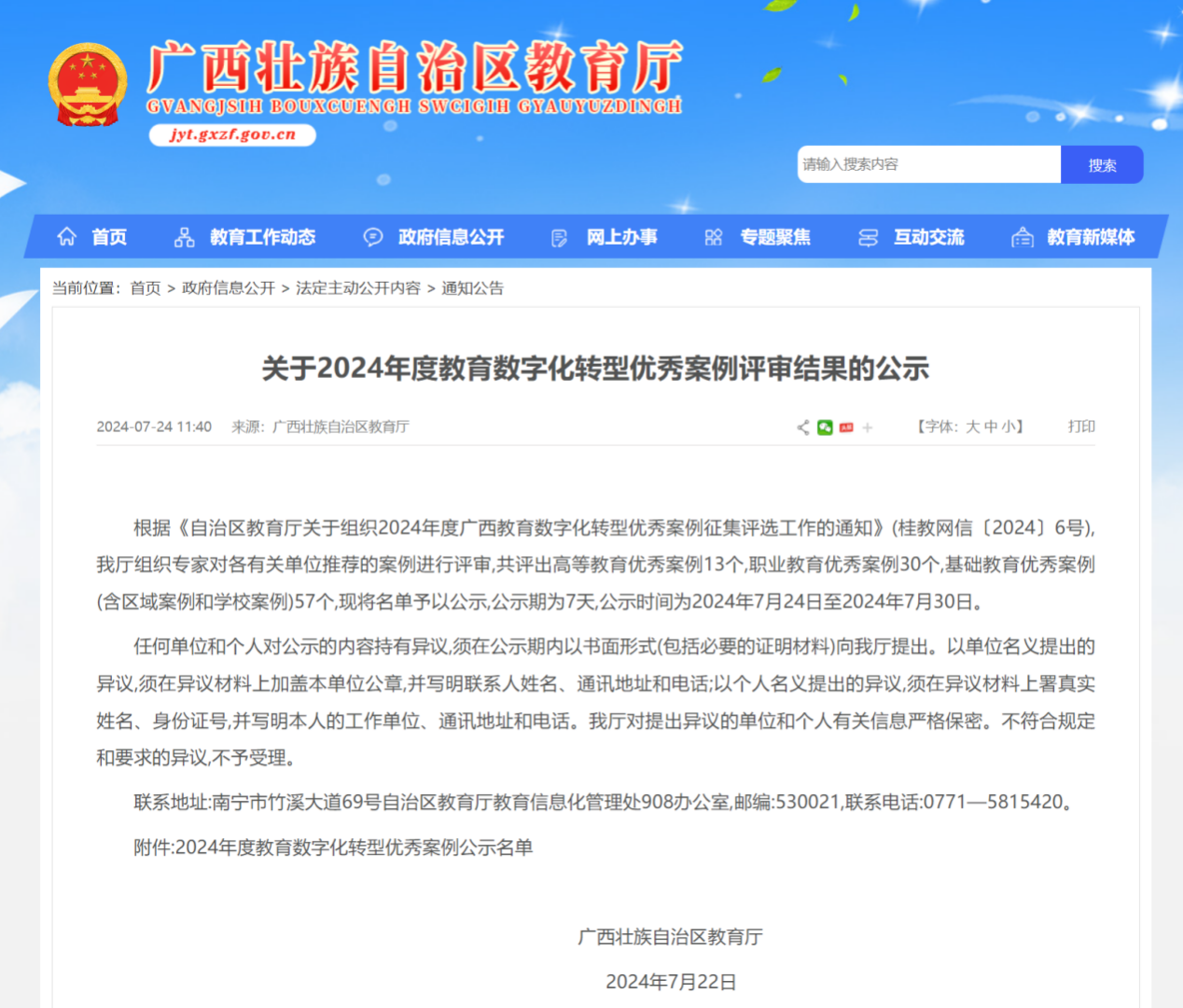 广西壮族自治区教育厅公示信息