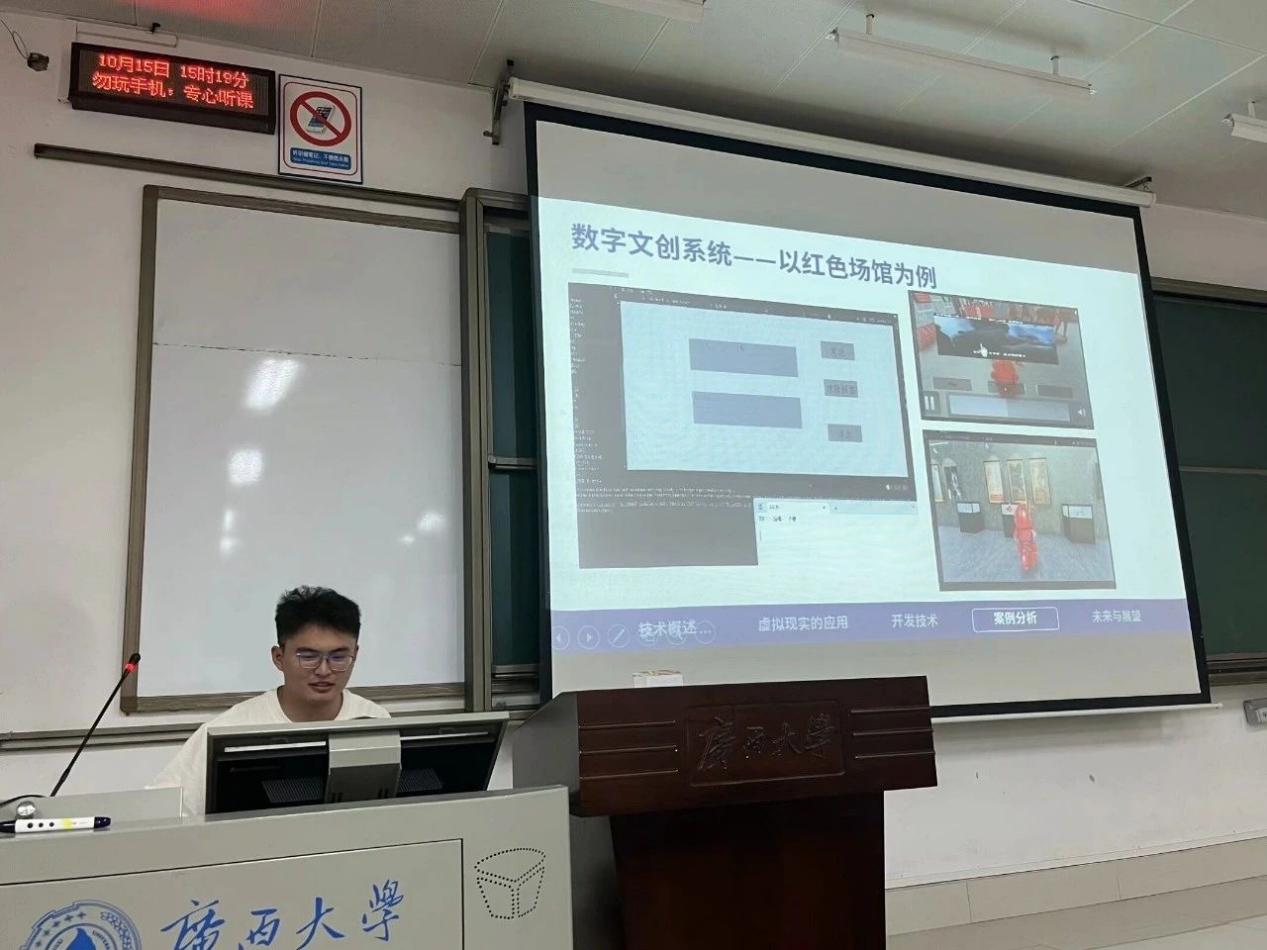 本次论坛以“虚拟现实技术在教学实验、数字文创等领域的应用及相关系统开发”为主题,深入探讨了虚拟现实在教学实验中的应用、在数字文创领域的应用和相关系统开发与实践。三位受邀宣讲的同学分别向在场同学分享了各自在相关领域的研究成果与科研经验,并对虚拟现实的未来应用前景进行了展望。