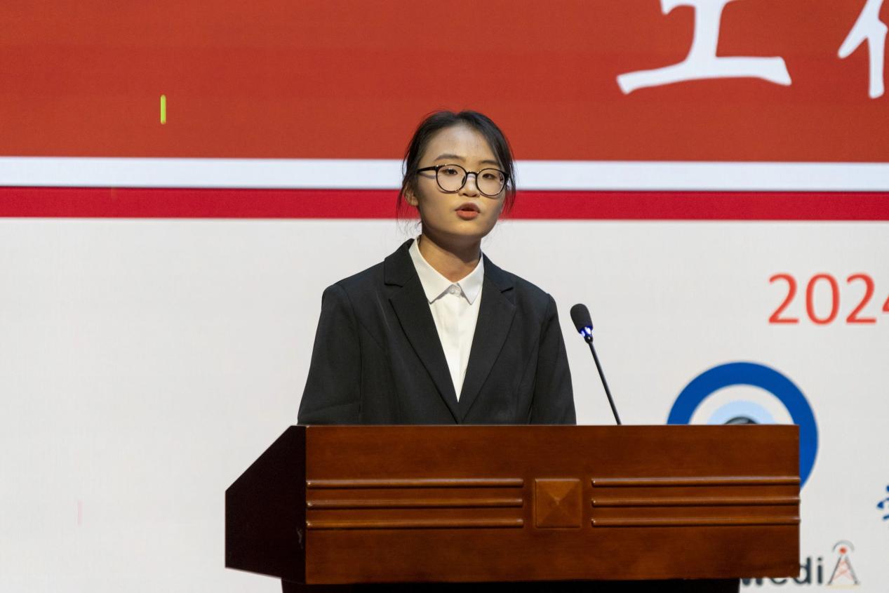 新闻与传播学院新媒体中心总编室成员孟伊娜作为兄弟学院代表发言。她充分认同新媒体所具有的重要价值,对电气工程学院新媒体中心的工作表示高度肯定,并衷心希望新闻与传播学院与电气工程学院的学生新媒体中心能够携手共进,共同书写学生宣传工作的新篇章。