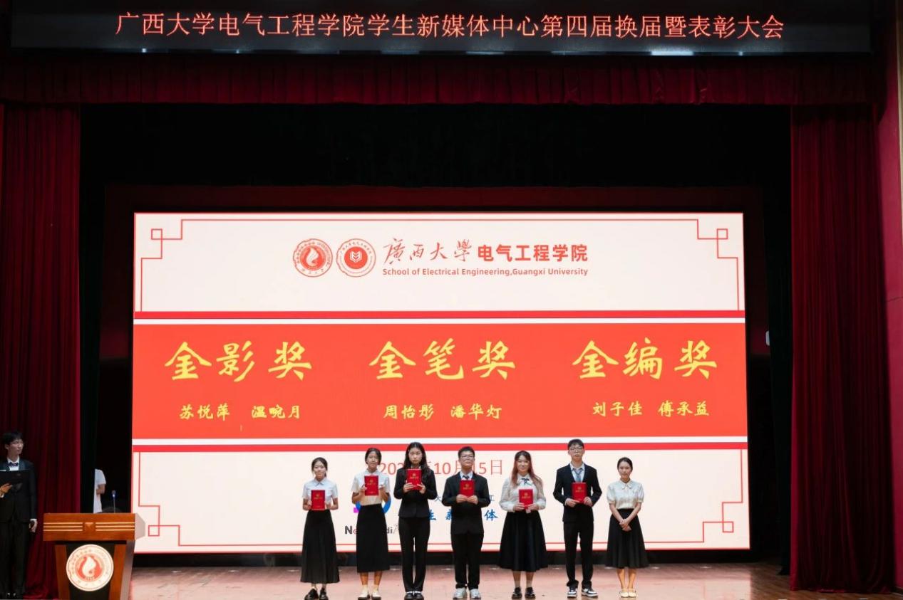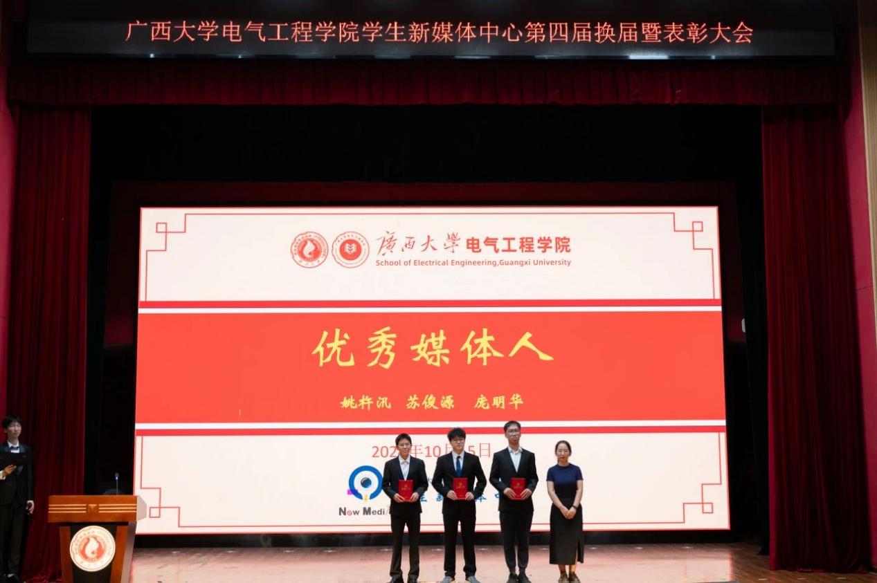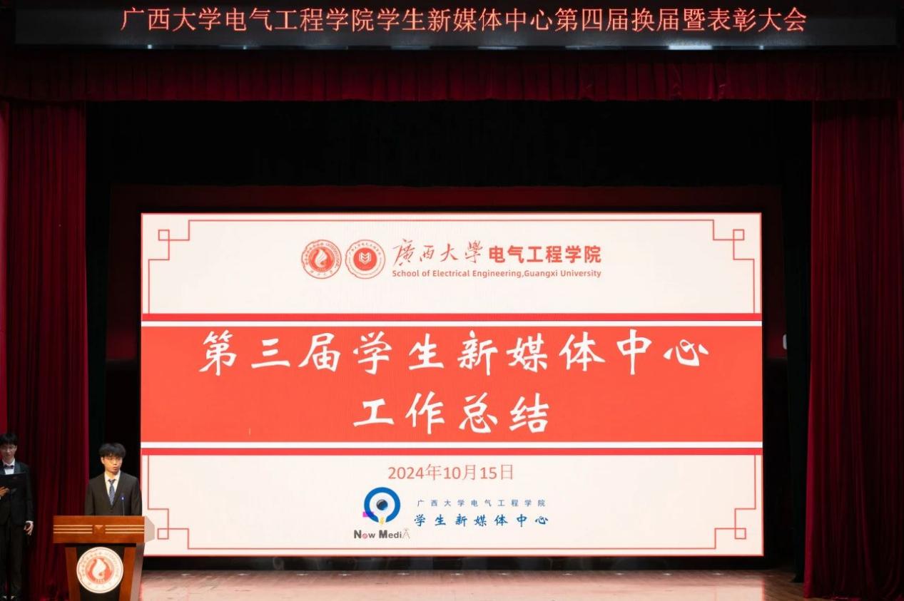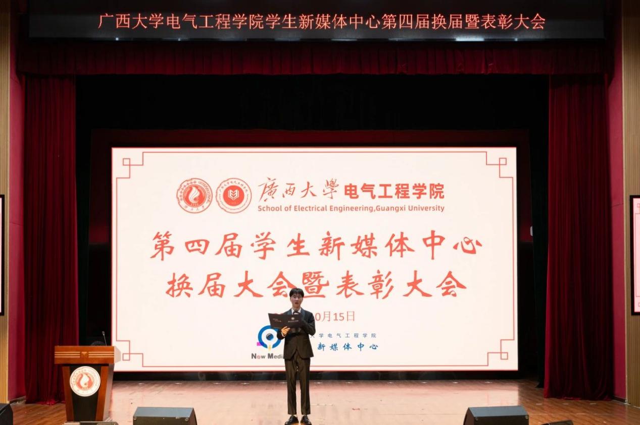 10月15日下午,开云kaiyun登录入口学生新媒体中心第四届换届暨表彰大会于大学生活动一楼小剧场顺利举行。团委副书记蒋冬连、李娟,中心指导老师冯敏等老师代表出席会议,新闻与传播学院新媒体中心代表以及各兄弟学生组织代表、电气学院学生新媒体中心全体成员参加会议。