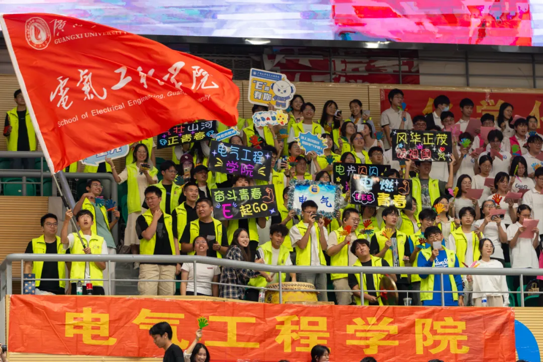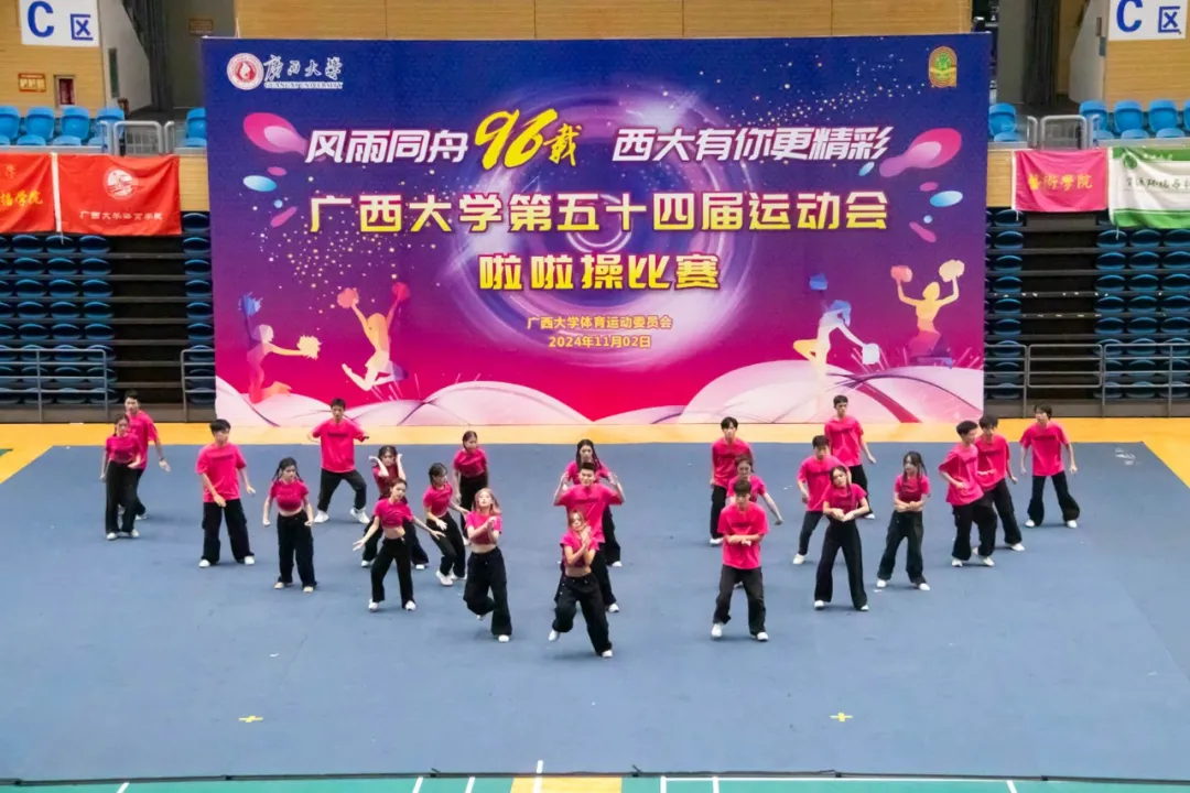 01 开幕式及颁奖 风雨同舟96载,西大有你更精彩。11月2日下午,广西大学第五十四届运动会啦啦操比赛在西校园综合体育馆如期开幕。经过一番“舞动乾坤”的较量,我院参赛队伍荣获大学院组三等奖、体育道德风尚奖及优秀奖。 开幕式我院队伍入场 我院荣获三等奖 我院获得奖励 02 啦啦队风采 电气工程学院啦啦操运动员们身着绚丽夺目的火龙果色队服,如花的笑脸绽放着青春的活力。他们如盛放的花朵,更如点燃夜空的烟花,尽显生命力量! 啦啦队员在表演 啦啦队员在表演 英姿飒爽,自信张扬,像划破黑暗的电光,他们的每次旋转跳跃都能让人眼前一亮! 啦啦队员在表演 啦啦队员在表演 他们用激情和汗水,在赛场上书写着青春华章,尽显青春活力之美,让满场观众无不沉醉在这热血沸腾的活力盛宴中,为他们献上热烈的掌声!继续带着刻苦拼搏精神向前走吧,奋进的电气学子们!文明其精神,野蛮其体魄,为建设更积极向上的校园文化贡献青春力量! 我院仇翘楚同学(中)获得“优秀运动员”表彰 我院学子在加油助威 赛后合照