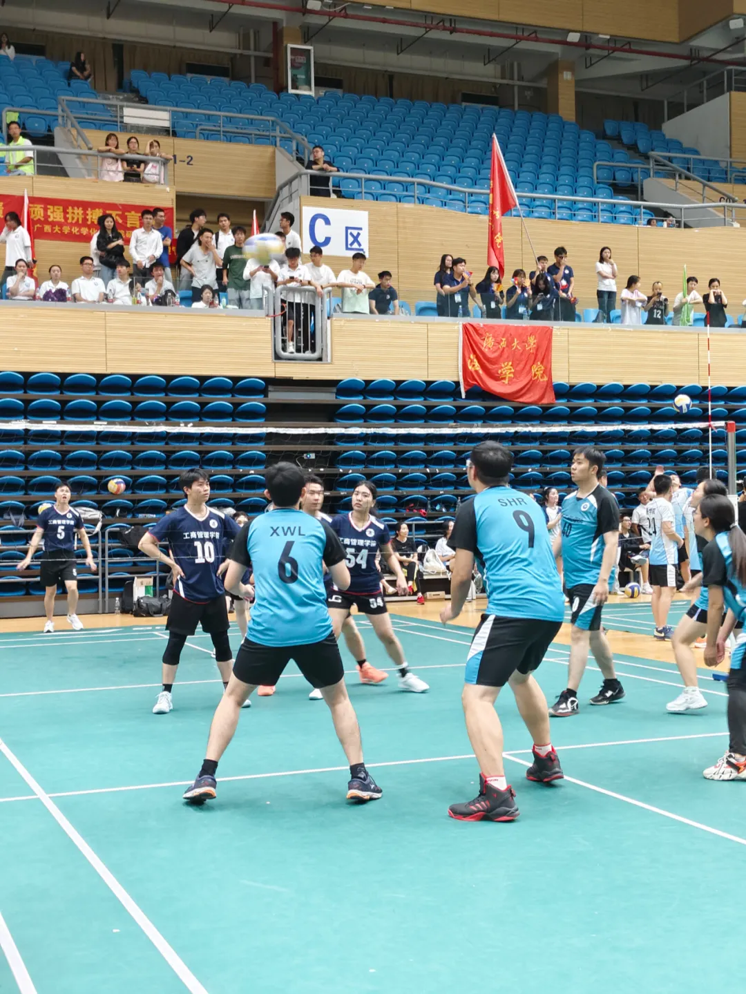 11月2日晚上进行小组赛,我院分别对阵新闻与传播学院、工商管理学院、校级功能型党支部。在紧张刺激的攻防转换、拦网扣杀中,队员们配合默契,发挥了优秀的团队合作和竞技水平。最终以大比分2:0的成绩分别战胜新闻与传播学院、校级功能型党支部,以0:2的成绩惜败工商管理学院。最终,以小组第二名的成绩晋级淘汰赛。