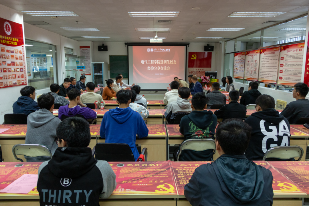 座谈会结束后,与会人员移步至综合楼110党员活动室,与在校学子进行了一场面对面的经验交流会。校友们回顾并分享了他们在备考选调生过程中的点滴经历,在基层工作中克服挑战与困难的经验,以及从初入基层至今思维方式的转变和心态的蜕变。