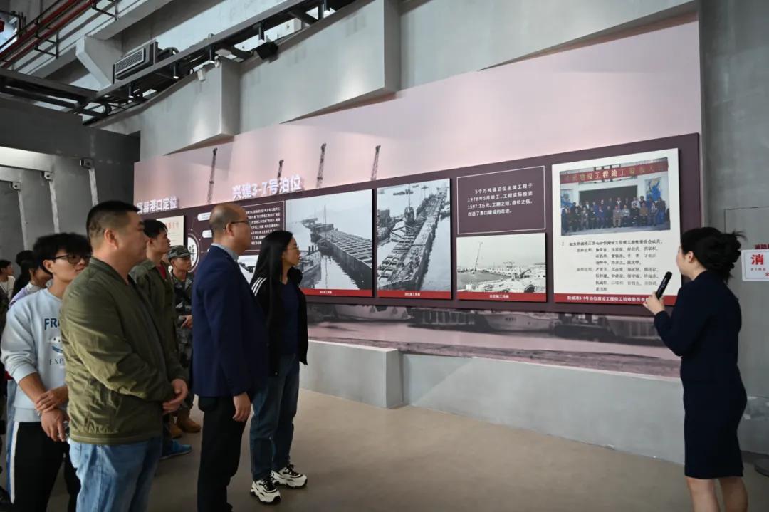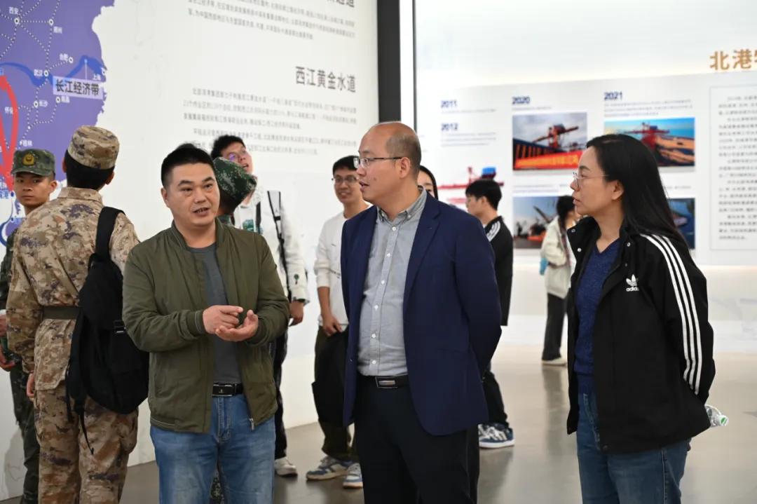 下午,实践团来到“北港故里历史文化中心。实践团首先参观了“广西322工程”文化展厅,展厅里展示的老物件、老照片,翻开了抗美援越、秘密建港的历史。通过讲解员的讲述,全体人员深入了解了“广西322工程”的时代背景、建设目标、发挥功能、产生效果和历史意义,感受了防城港从“0”到“亿”,从海上胡志明小道启动到西部陆海新通道建设的非凡历程。随着脚步迈进2号展厅,实践团看到了防城港五十多年的沧海桑田和日新月异的变化,感受到了向海图强、向海而兴的伟大力量