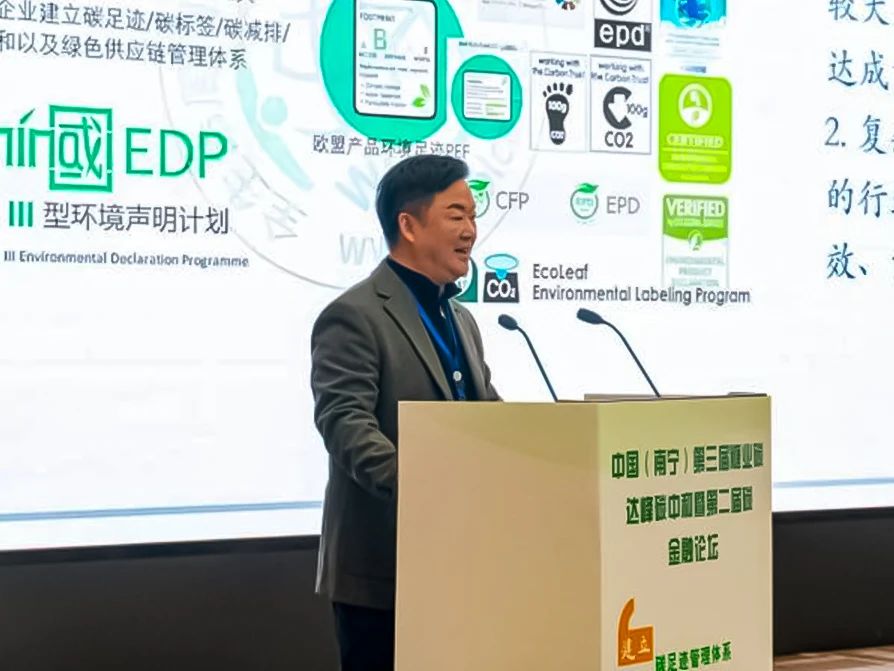 我院教授、广西碳达峰碳中和研究会专家委员会委员海涛受邀参会并进行主题发言。海涛教授围绕 “2025 新基建 —— 碳足迹管理体系建设” 展开深入阐述。他从 “双碳” 背景出发,深入剖析了碳足迹管理体系建设的重要意义,强调这不仅关乎生态建设,更是推动各行业可持续发展的关键。接着,海涛教授详细分析了产品碳足迹体系面临的挑战,并结合国内外局势对未来政策与行动进行了展望。最后,他指出控制碳足迹对行业发展的深远影响,以及我国碳金融市场的广阔前景,为参会者带来了新的理念与方向。