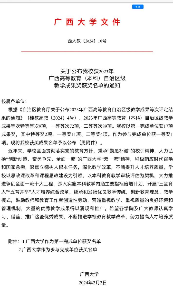 荣获2024年广西大学学生