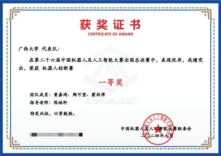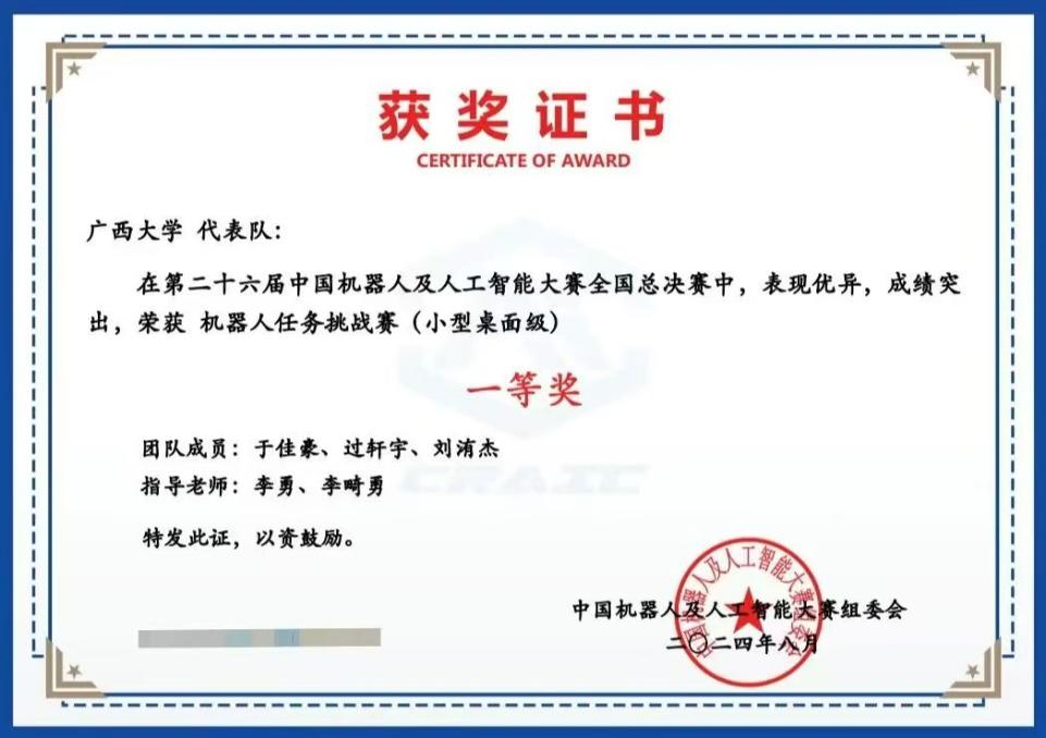 我院在第二十六届中国机器人及人工智能大赛中取得佳绩,本次获奖成绩为我院学生历年来在该项赛事上取得的最好成绩
