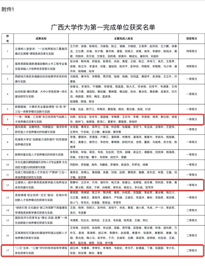 我院喜获三项2023年广西高等教育(本科)自治区级教学成果奖刘辉副院长、黎静华教授的主持项目均获得一等奖,胡立坤教授主持项目获得二等奖。