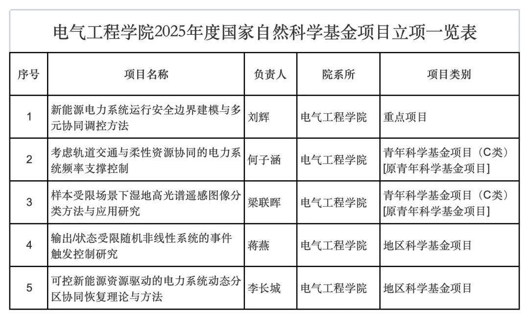 作为衡量科研实力与学术水平的核心标志,国家自然科学基金重点项目的获批将进一步推动我院电气工程专业学科的高质量发展,为我国新能源电力系统安全稳定运行、新能源高效消纳提供坚实保障,更将为国家“双碳”重大战略目标的实现注入强劲科研动能。
