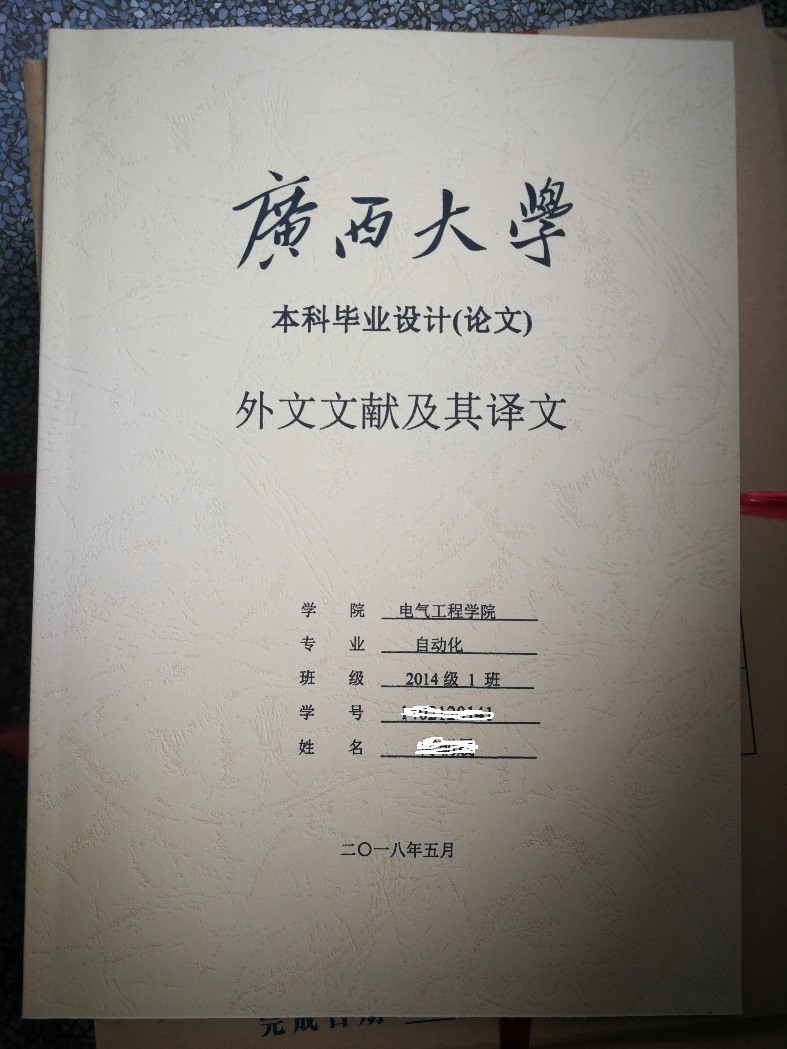 二、 外文翻译采用学校要求的封皮纸张打印装订,英文原文在前,译文在后。按规范要求用系统导出的带水印底板,自己撰写的版本,不能直接用系统导出的文档。