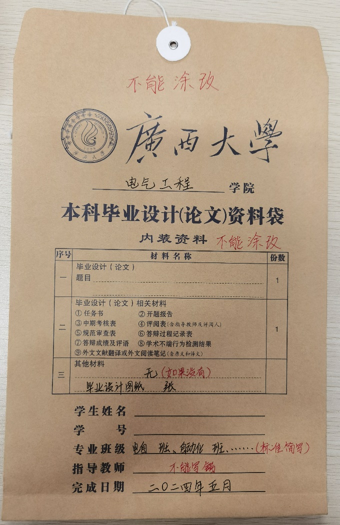 四、 设计图纸不装订(如有),直接放入资料袋。