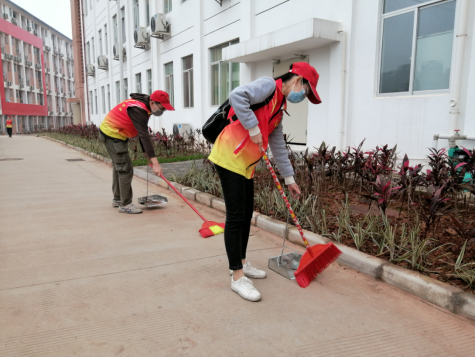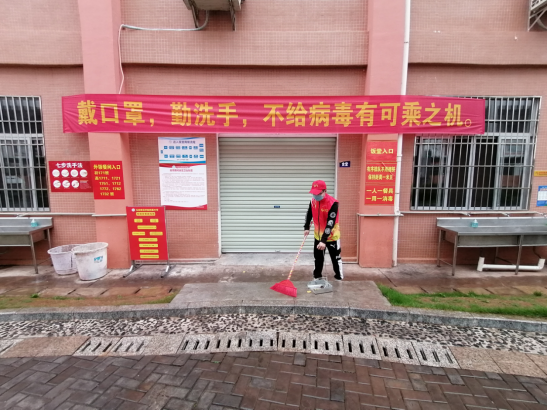 图1 梁昊宇打扫食堂门口