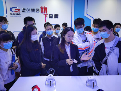 最后,师生们实地走访、参观园区内广西中伟能源科技有限公司和港创智睿实业有限公司。在参观过程中,企业工作人员详细介绍了公司的产业布局、发展领域、福利待遇、智能产品、合作企业。同学们结合所学知识,深入了解了企业在清洁能源装备制造和人工智能领域的发展战略、工作技能要求等。
