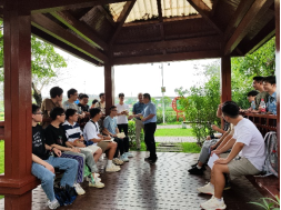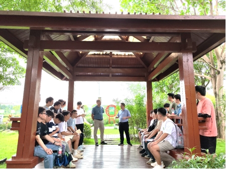 参观过程中,大家沿途步入湿地公园的一处小亭内,李道洋书记向各位党员们阐述此次党日活动的重要意义。李道洋书记表示,党员同志要牢记习近平总书记嘱托,广西生态优势金不换,要坚持把节约优先、保护优先、自然恢复作为基本方针。徐俊华书记随后补充道,两支部的学生党员们今后参加工作后,要时刻把人与自然和谐相处作为基本目标,使八桂大地青山常在、清水长流、空气常新,让良好生态环境成为人民生活质量的增长点、成为展现美丽形象的发力点。
