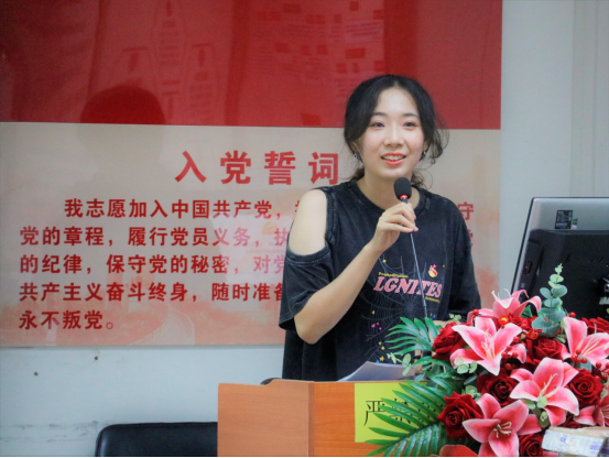 首先,由上半年新进积极分子武子睿等八位同志与大家分享了红色诗词、电影、著作和系列讲话等内容。同志们从“愿请长缨,不负青春为家国”中领悟到了共产党的初心和使命,从“六十万对八十万,是碗夹生饭也要把它吃下去”中感受到了领导人的胆识与魄力,从“七年知青岁月”中激起了民族复兴的青春热血。