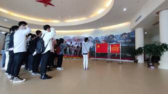 在纪念馆大厅,支部全体党员同志怀着庄严肃穆的心情对着党旗宣誓,重温入党誓词,将其牢记于心,极大地激发了同志们爱党爱国之情。