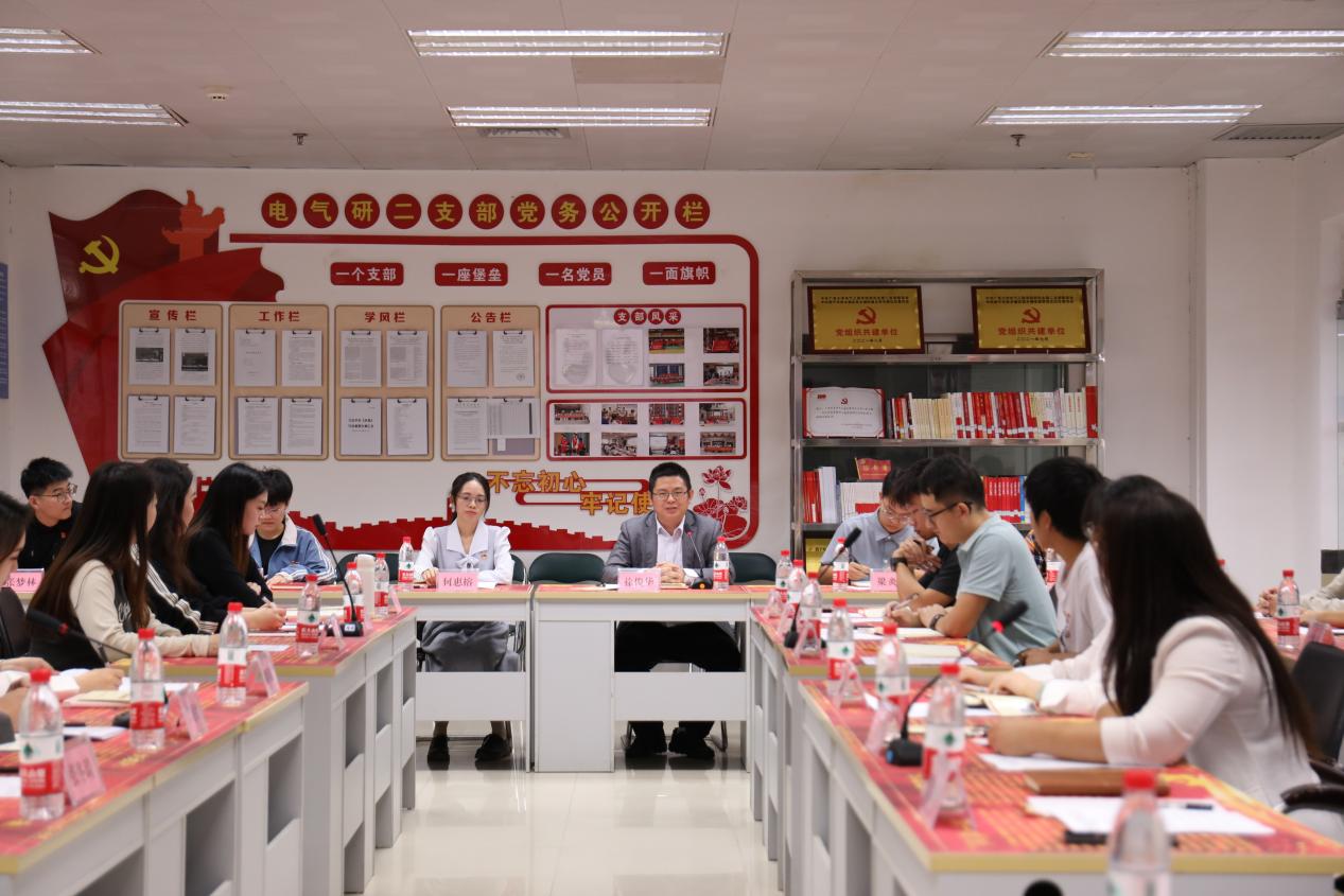 为深入学习贯彻习近平总书记关于党的建设的重要思想,加强高校基层党支部之间的交流与合作,2023年11月23日下午,开云kaiyun登录入口研究生第二党支部(以下简称为广西大学电气研二支部)与广西大学海洋学院学生党支部、广西艺术学院音乐学院学生党支部在广西大学综合楼110党员活动室共同开展了“党员有约,朋辈互助”主题党日活动座谈会。座谈会由海洋学院党委委员、专职组织员林玉华主持,两校三院党员师生代表共46人参加。